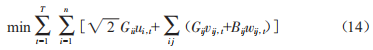 式中,7為優(yōu)化時段總數(shù);n為系統(tǒng)中節(jié)點數(shù)量;Pi,t為節(jié)點i在t時段注入的有功功率。