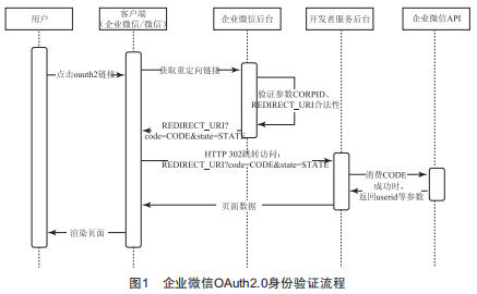企業(yè)微信0Auth2.0身份驗(yàn)證流程如圖1所示。