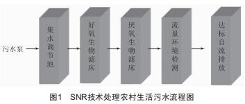 SNR技術(shù)具有動(dòng)力使用最小化、污泥產(chǎn)生最小化、維護(hù)管理頻率最小化的優(yōu)點(diǎn),其工藝流程如圖1所示。
