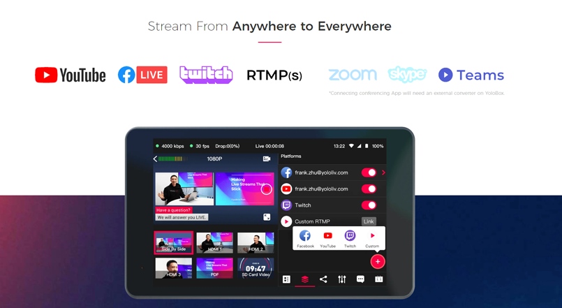 眾所周知,以往一套專業(yè)的直播設(shè)備除了攝像機、音頻設(shè)備之外,還包括了高性能計算機、專用辦公桌、ATEM Mini、監(jiān)視器等設(shè)備,這對普通用戶來說不僅成本難以承受,對于專業(yè)技術(shù)的要求也很高。相比之下,越來越多的用戶更加傾向于簡化裝備,例如使用一臺平板電腦甚至一部手機等“輕量化”設(shè)備,就能實現(xiàn)實時拍攝、同步直播。