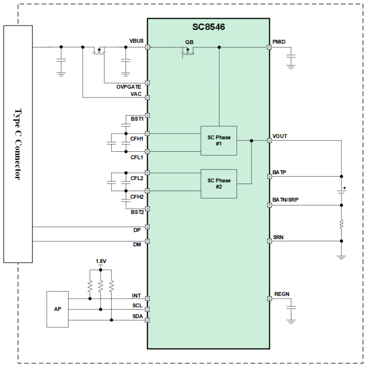 國(guó)內(nèi)首款兼容UFCS快充規(guī)范的40W高壓電荷泵充電產(chǎn)品--SC8546.