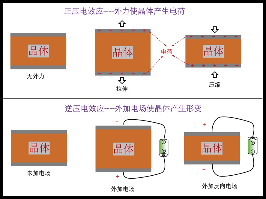 根據(jù)對(duì)前面壓電效應(yīng)的理解,晶體可以將電能轉(zhuǎn)化為機(jī)械能,然后機(jī)械能又能轉(zhuǎn)化為電能。如果給晶體通上交流電,那不就是一會(huì)收縮,一會(huì)兒膨脹,這不就是機(jī)械振動(dòng)嗎?