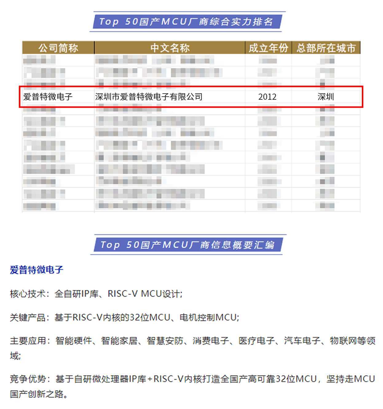 喜訊!愛(ài)普特微電子入選“Top 50國(guó)產(chǎn)MCU廠商”榜單