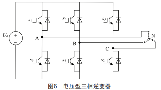 系統(tǒng)采用電壓型逆變器驅(qū)動(dòng)電機(jī)運(yùn)行,其結(jié)構(gòu)如圖6所示。