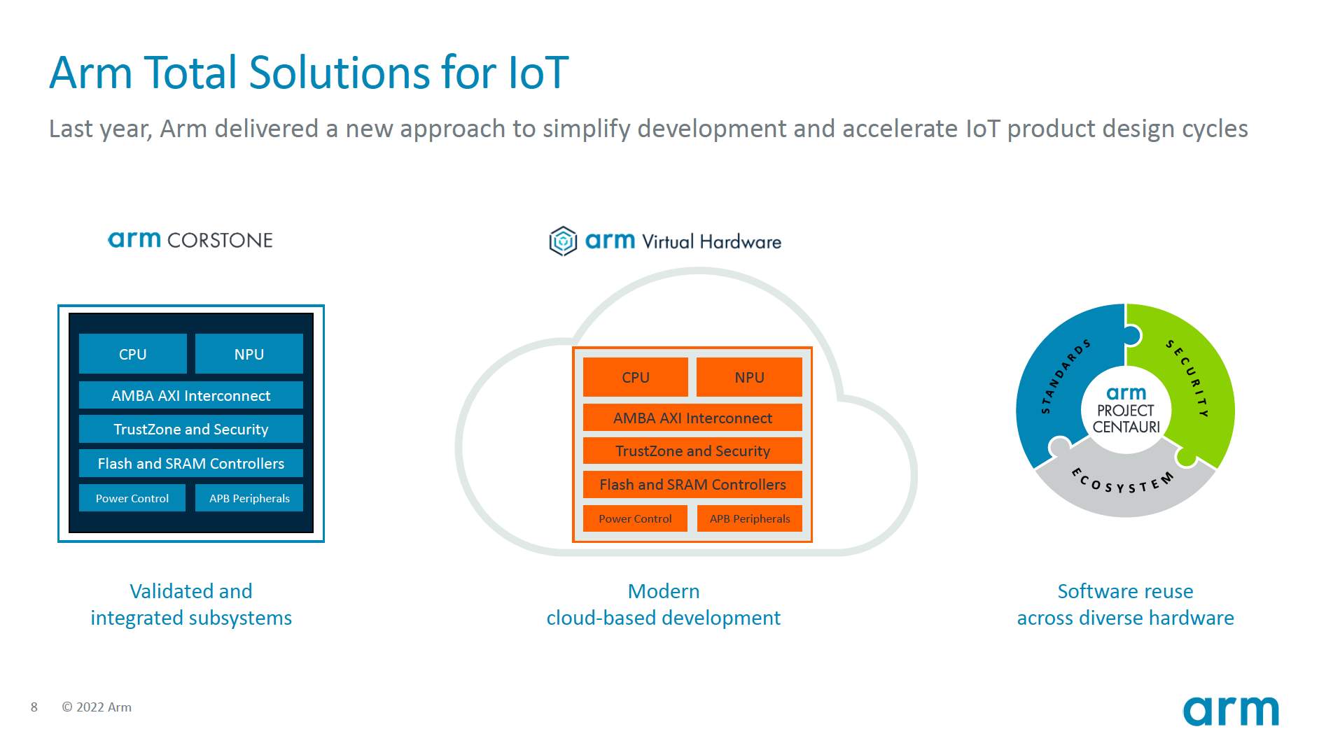 “Arm 架構(gòu)是物聯(lián)網(wǎng)的基石。Arm 在 IoT 和嵌入式領(lǐng)域已經(jīng)有很高的市場(chǎng)份額。在我們的合作伙伴每季度平均出貨的70多億顆基于Arm的芯片中,超過(guò)半數(shù)是面向物聯(lián)網(wǎng)/嵌入式設(shè)備的。也就是說(shuō)我們?cè)谶@方面有很深的積累?!瘪R健分享到。
