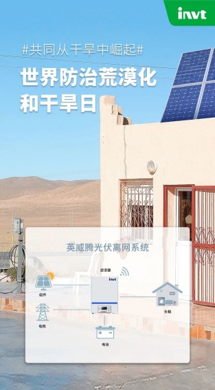 6月17日,是第28個(gè)世界防治荒漠化和干旱日,全球宣傳主題是:“共同從干旱中崛起”。英威騰攜手綠色光伏,為荒漠中的人們點(diǎn)亮微光。