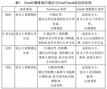 oneID便捷旅行模式與FastTravel項目的區(qū)別如表1所示。