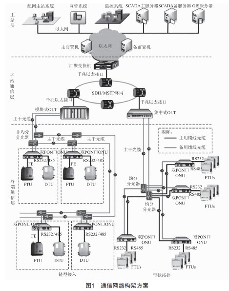 數(shù)據(jù)通信是配電網(wǎng)設備運行環(huán)境綜合在線系統(tǒng)中至關重要的環(huán)節(jié) ,通信質(zhì)量直接決定了整個系統(tǒng)能否正常運行。在電力系統(tǒng)中 ,采用的通信方式有無源光纖專網(wǎng)通信、工業(yè)以太網(wǎng)通信、電力載波技術、無線專網(wǎng)與無線公網(wǎng) 。但由于無線專網(wǎng)易受干擾且大規(guī)模組網(wǎng)復雜:無線公網(wǎng)的安全性不易保證且無法保證數(shù)據(jù)實時性: 電力載波技術的通信距離較短且一 次回路發(fā)生變化時數(shù)據(jù)通信也會發(fā)生變化等 , 不適用于配電網(wǎng)絡 ,所以目前電力系統(tǒng)大都采用的是無源光纖專網(wǎng)通信、工業(yè)以太網(wǎng)通信方式。