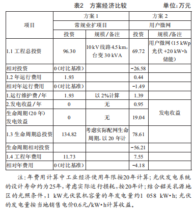 用戶微網(wǎng)系統(tǒng)采用分布式電源組建微網(wǎng)保障供電能夠有效解決偏遠山區(qū)用戶用電服務"最后一公里"的問題,對比常規(guī)業(yè)擴項目,用戶微網(wǎng)投資相對較少,經(jīng)濟性能較優(yōu),建設周期較短,能夠及時滿足用戶用電需求,同時也能給電網(wǎng)帶來部分收益,可解決常規(guī)業(yè)擴項目投資效益低、建設速度緩慢等問題。