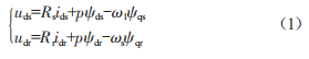 根據(jù)圖3所示的電路圖及電路原理,可得出DFIG在du坐標(biāo)系下的數(shù)學(xué)模型為:
