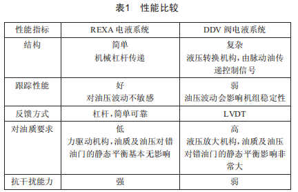 REXA執(zhí)行器與原液壓調(diào)節(jié)系統(tǒng)的性能分析比較,如表1所示。