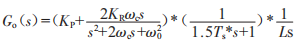 為了對(duì)0PR控制器進(jìn)行參數(shù)整定,對(duì)圖4進(jìn)行合理簡(jiǎn)化。合并小時(shí)間常數(shù)慣性環(huán)節(jié),并且忽略干擾量和前饋抑制量。由于實(shí)際濾波電感的等效電阻遠(yuǎn)小于其電感值,故一并略去,得到簡(jiǎn)化后的系統(tǒng)開環(huán)傳遞函數(shù)為: