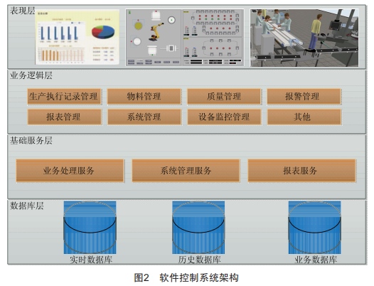 SCADA系統(tǒng)的制殼線軟件界面色彩美觀、直觀易懂,至少包含輸入工件號碼、存檔模殼歷史記錄、接近錯誤屏幕、操作手動功能、監(jiān)督和配合工藝過程、上載/卸載工件等功能。對于每個模殼零件,保存工藝過程文件,且對每個模殼的位置進行跟蹤并作狀態(tài)報告。該系統(tǒng)提供工藝過程狀態(tài)圖形,并提醒超過極限的工藝條件。圖2為軟件控制系統(tǒng)架構(gòu)圖。