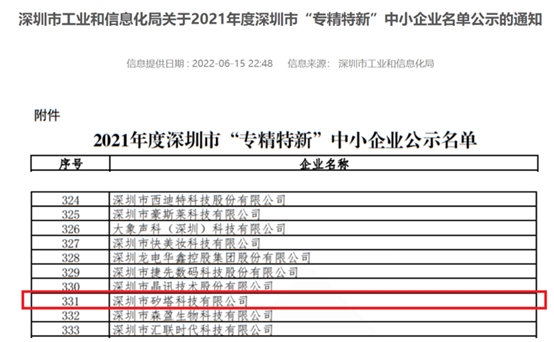 矽塔科技憑借其突出的產品創(chuàng)新能力、高速提升的市場覆蓋率以及優(yōu)秀的經營管理能力,成功獲評2021年度深圳市“專精特新”中小企業(yè)。
