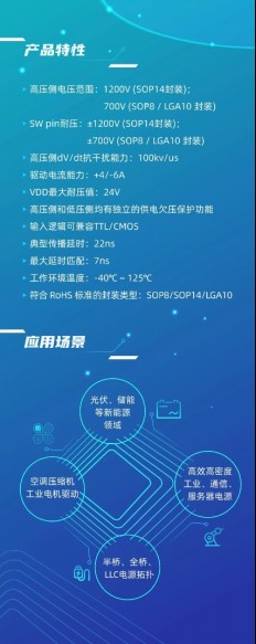 NSD1624輸入邏輯可兼容TTL/CMOS,方便控制。高壓側(cè)和低壓側(cè)均具備獨(dú)立的供電欠壓保護(hù)功能(UVLO),能在10~20V電壓范圍內(nèi)工作。此外,NSD1624可提供SOP14,SOP8,LGA 4*4mm多種封裝形式。