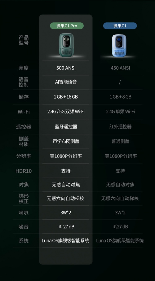 相比于市場表現(xiàn)和用戶口碑都很優(yōu)秀的微果C1,微果C1 Pro的升級,更是直接瞄準用戶體驗息息相關(guān)的功能和配置,更上一層樓。