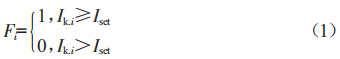 式中,Fi為節(jié)點(diǎn)i的故障狀態(tài),Fi=1,表示節(jié)點(diǎn)i有故障電流流過(guò),Fi=0,表示節(jié)點(diǎn)i沒(méi)有故障電流流過(guò):Iki為節(jié)點(diǎn)i故障電流有效值:Iset為故障電流閾值。