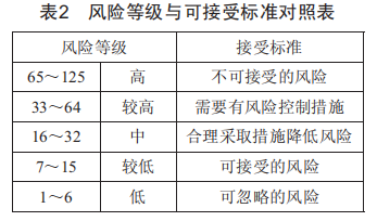 對已經(jīng)識別的風(fēng)險進(jìn)行評價,確認(rèn)風(fēng)險等,風(fēng)險等級=可能性x嚴(yán)重性×可檢測性。表2為風(fēng)險等級與風(fēng)險接受標(biāo)準(zhǔn)對照表。