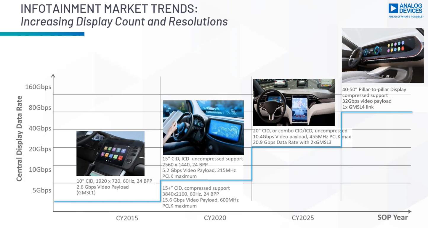 中控顯示屏越來(lái)越大越高清,對(duì)視頻數(shù)據(jù)信息傳輸?shù)膸捫枨笤絹?lái)越高
