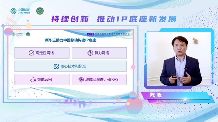 陳峰在“持續(xù)創(chuàng)新,推動(dòng)IP底座新發(fā)展”的主題演講中提到,面對(duì)算網(wǎng)融合的新機(jī)遇、新挑戰(zhàn),新華三集團(tuán)將充分整合在智能云網(wǎng)、vBRAS、核心技術(shù)和標(biāo)準(zhǔn)、算力網(wǎng)絡(luò)、確定性網(wǎng)絡(luò)等方面的實(shí)力,與中國(guó)移動(dòng)共同構(gòu)建統(tǒng)一IP算網(wǎng)底座,為未來數(shù)字經(jīng)濟(jì)的發(fā)展夯實(shí)基礎(chǔ)。