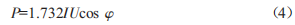 式中,U為曳引電動機(jī)的輸入電壓(V):I為曳引電動機(jī)的輸入電流(A):cosφ是電機(jī)功率因數(shù),一般取0.75。