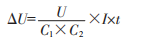 式中,AU為電壓差:U為電壓:1為時間:1為電流:C1、C2為超級電容器的電容量。