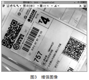 灰度圖像是從RP一圖像轉(zhuǎn)換而來,圖像增強(qiáng)使識別目標(biāo)和背景圖像區(qū)分更加明顯。圖像增強(qiáng)的算法是,圖像中的每一個像素點乘以一個增強(qiáng)因子,加上一個抵消值(offset),增強(qiáng)圖像每一點的像素值的算法如公式(2)所示。調(diào)用算子scaleimage可以對圖像進(jìn)行增強(qiáng)處理,具體的代碼為scaleimage(PrayImage!Imagescaled!1x84783!-185)。增強(qiáng)效果如圖3所示。