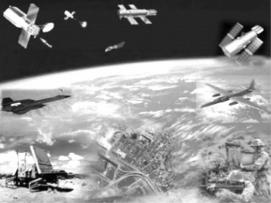 各種高新技術(shù)廣泛應(yīng)用于戰(zhàn)場偵察監(jiān)視,極大地提高了戰(zhàn)場偵察監(jiān)視能力,構(gòu)成了以偵察監(jiān)視衛(wèi)星、高空偵察機(jī)、無人機(jī)、預(yù)警機(jī)、各種傳感器材等組成的全方位、大縱深、多層次的立體偵察體系,具有全天候、高分辨率和實(shí)時(shí)監(jiān)控的能力,戰(zhàn)場具有很高的"透明度",如圖1所示。由于裝甲機(jī)械化部隊(duì)本身重裝備多、目標(biāo)大、配置地域廣、機(jī)動(dòng)距離遠(yuǎn),又處在敵方全時(shí)空監(jiān)視之下,因此,其在作戰(zhàn)過程中將處在暴露甚至"單向透明"的威脅之中。