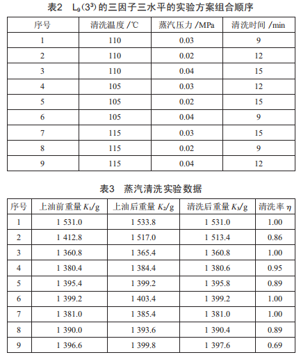根據(jù)表中數(shù)據(jù)可知,影響清洗效果的主次因素分別為:清洗時(shí)間、蒸汽壓力、清洗溫度。