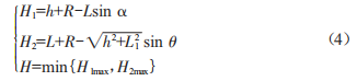 對式(2)、式(3)代入上述相關(guān)參數(shù)值,可得9=23.6o,B=74.1o,所以: