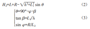 機器人前輪越障時,前擺臂抬起至最高位,如圖2所示,根據(jù)幾何關(guān)系可得: