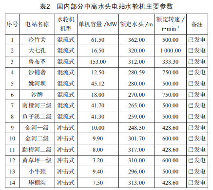 中高水頭水輪機(jī)機(jī)型選擇及參數(shù)設(shè)計(jì)