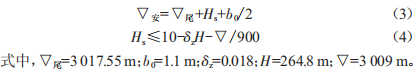 將上述數(shù)據(jù)分別代入式)3)、式)4),可得(Hs≤1.88m:V安=3019.98m。