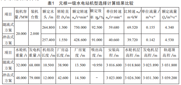 在該電站前期設(shè)計(jì)階段,對(duì)這兩種機(jī)型均進(jìn)行了選擇計(jì)算,結(jié)果如表1所示。