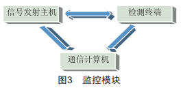 本系統(tǒng)由三部分組成:監(jiān)控中心、監(jiān)控主機(jī)(含調(diào)制設(shè)備)、監(jiān)控終端,如圖2所示。監(jiān)控主機(jī)安裝于配電所(或箱變)內(nèi),連接待監(jiān)測(cè)電纜的首端,終端模塊安裝于配電箱(或設(shè)備箱)內(nèi),連接待監(jiān)測(cè)電纜的末端。監(jiān)控主機(jī)、電纜和終端模塊組成一個(gè)完整的電流回路,在電纜被盜割時(shí),回路斷開,監(jiān)控主機(jī)檢測(cè)到該電纜電氣參數(shù)發(fā)生突變,即可判斷該電纜被盜。