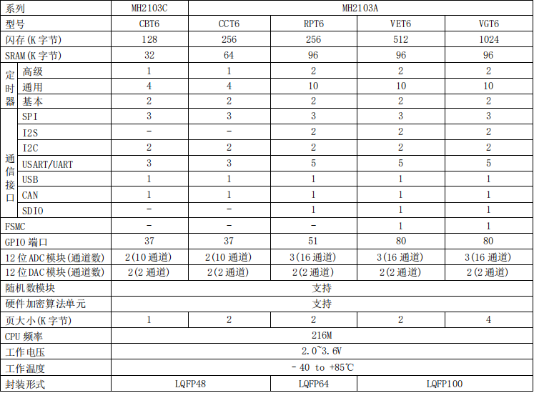 MH2103A(C)xxxx系列使用高性能的32位內(nèi)核,最高工作頻率216 MHz。