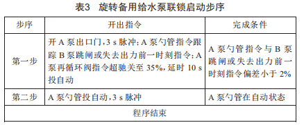 以A泵為例介紹給水泵旋轉(zhuǎn)備用狀態(tài)下聯(lián)鎖邏輯動作步序如表3所示。