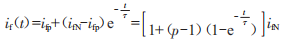 根據(jù)RL電路全響應(yīng)理論,勵(lì)磁機(jī)勵(lì)磁繞組在額定勵(lì)磁電壓ufN運(yùn)行時(shí),突加強(qiáng)勵(lì)電壓ufp,勵(lì)磁電流if呈指數(shù)規(guī)律變化: