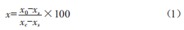 式中,x為指標(biāo)標(biāo)準(zhǔn)化值,取值范圍為[0,100]:xc為指標(biāo)初始值:x0為指標(biāo)實(shí)測(cè)值:xs為指標(biāo)警示值。