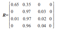 根據(jù)表2中數(shù)據(jù)和3.2節(jié)所述方法計(jì)算各指標(biāo)隸屬于各狀態(tài)等級(jí)的隸屬度,構(gòu)成糊評(píng)判矩陣R為: