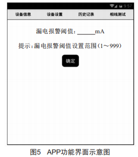 當(dāng)線路中出現(xiàn)漏電流時(shí),主機(jī)裝置會(huì)及時(shí)將報(bào)警信息推送到用戶端APP上,其顯示界面如圖6所示。