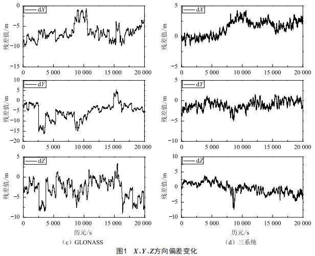 本文研究了各系統(tǒng)間的時間框架和坐標框架的統(tǒng)一 , 并利用實測數(shù)據(jù)對三系統(tǒng)進 行 了解 算 , 比 較了BDS 、GPS、GLONASS與三系統(tǒng)組合單點定位的精度。