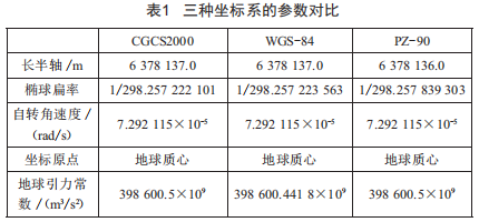 三種坐標系的參數(shù)對比如表1所示。