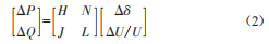 第1個(gè)簡(jiǎn)化是:無(wú)功功率與電壓具有強(qiáng)耦合關(guān)系,有功功率與頻率具有強(qiáng)耦合關(guān)系,因此忽略子陣N、J,將修正方程式簡(jiǎn)化為: