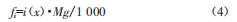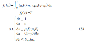 式中,fi為坡道附加阻力)kN):i)x)為列車在x處的坡道千分?jǐn)?shù))%):M為列車質(zhì)量)t):g為重力加速度)m/s2)。