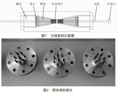 由于進行高水壓測試,因此必須對應變片導線引出口進行密封,本試驗采用密封接頭對導線引出口進行密封。密封接頭的好壞直接影響水壓試驗的成功與否,因此要求密封接頭絕對可靠,不能滲漏,對密封接頭的研制提出了很高的要求。