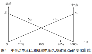 定子單相接地時 ,零序電壓U0 與接地點a的關系如圖2所