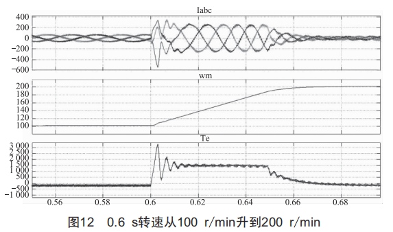 0.6s轉(zhuǎn)速從100r/min升到200r/min,波形如圖12所示。