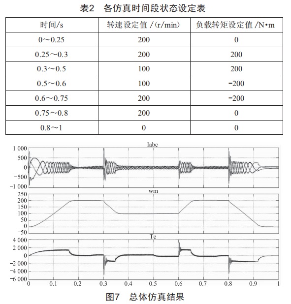 從仿真結(jié)果的波形總圖來看,轉(zhuǎn)速和轉(zhuǎn)矩的變化都達到了預(yù)期效果,下面按照時間順序?qū)Σㄐ芜M行分析。