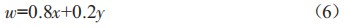式中 ,x表示采用層次分析法得到的權(quán)重 ,y表示采用嫡值法得到的權(quán)重。